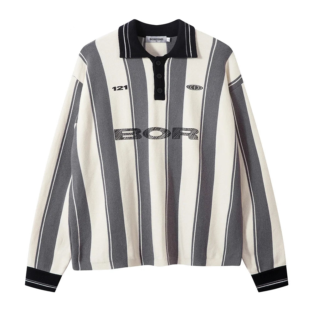 Knit Messi  style streetwear, confortable et élégant, idéal pour l’automne et l’hiver. Design rayé et détails spliced pour un look moderne.